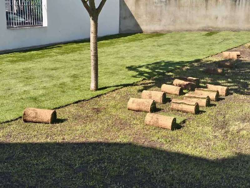 Le 2ème jour nous avons effectué la pose du gazon en rouleau sur une surface d'environ 400m2 et voici en photo le résultat .